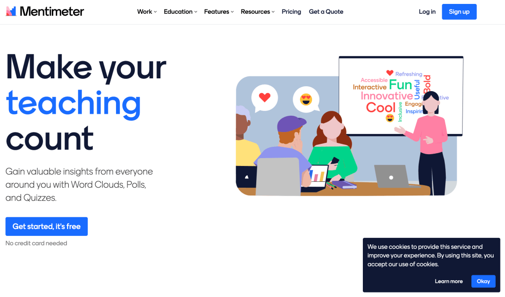 Well, I have a remedy for you!  Try Mentimeter…it is not your typical presentation software.  It is FREE for the basic program and requires no downloads or installations.